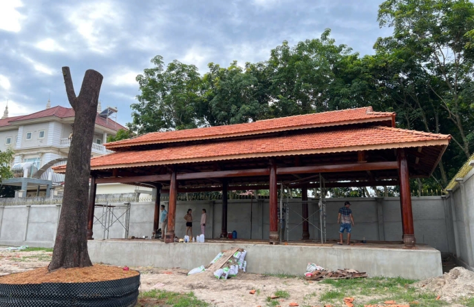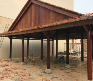 Cột trính Gỗ căm xe Kèo, xuyên, đòn tay gỗ dầu Đường kính cột: 23 Hoành 70 Ngối vãi cá mới Diện tích giọt nước: 5 x10