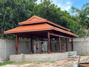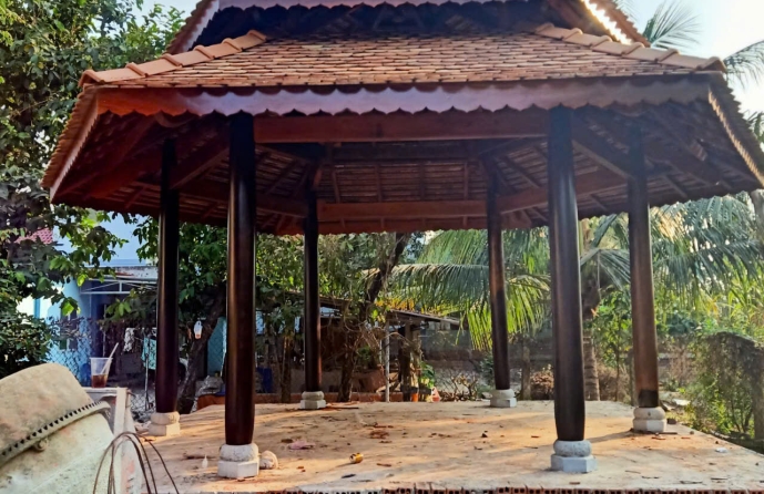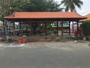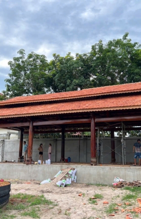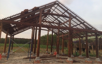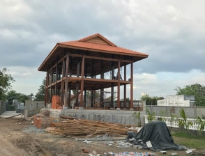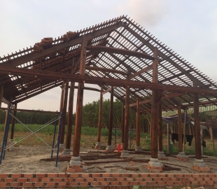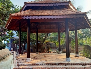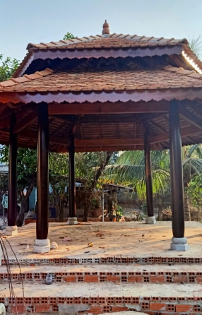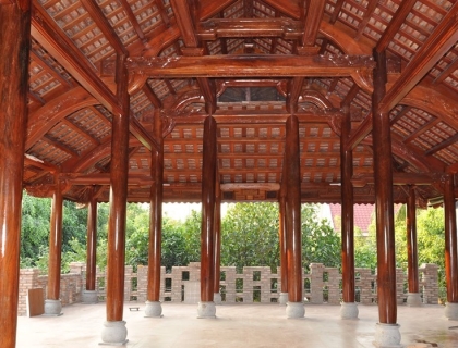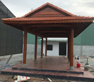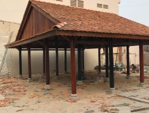 Cột trính Gỗ căm xe Kèo, xuyên, đòn tay gỗ dầu Đường kính cột: 23 Hoành 70 Ngối vãi cá mới Diện tích giọt nước: 5 x10